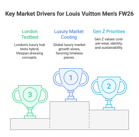 Core thesis: Louis Vuitton Men’s FW26 is more than a collection. It is a live prototype for how luxury can sell home‑coded, lifespan dressing to a global, digitally native audience while protecting pricing power.